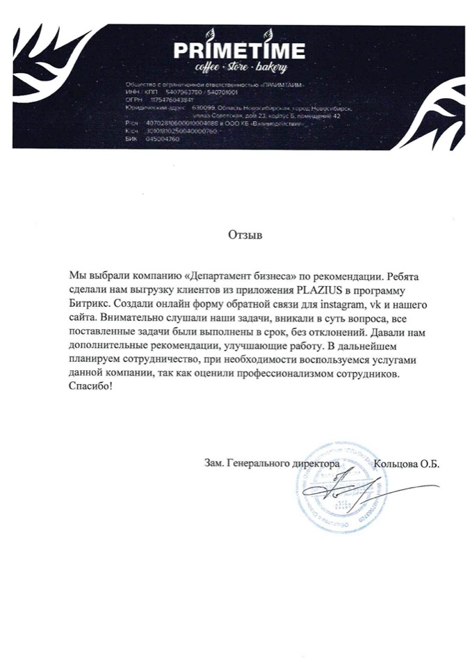 Кейсы и отзывы можно получить сделав запрос на e-mail info@depbz.ru